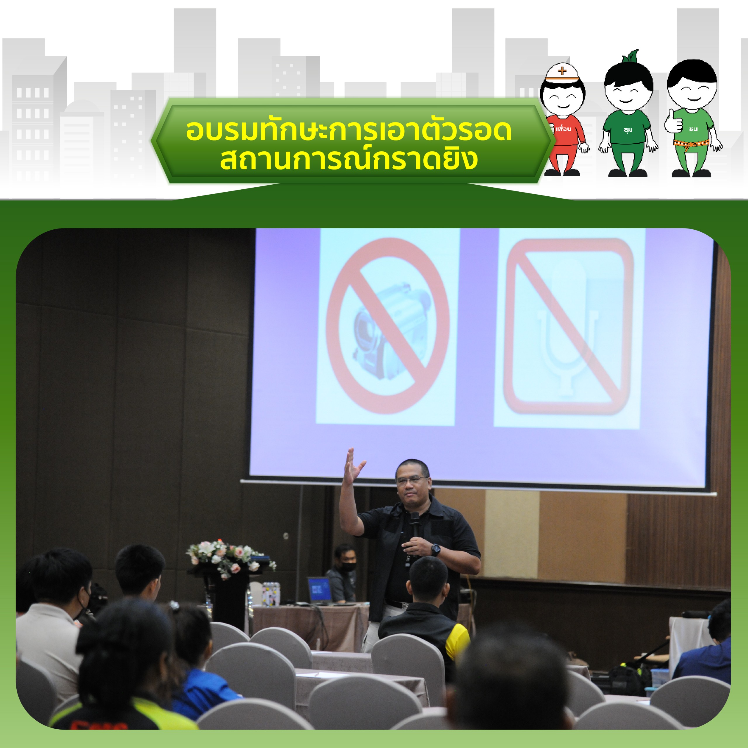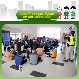 - ทักษะการเอาตัวรอดจากสถานการณ์กราดยิง ( Run Hide Fight ) และภัยคุกคาม