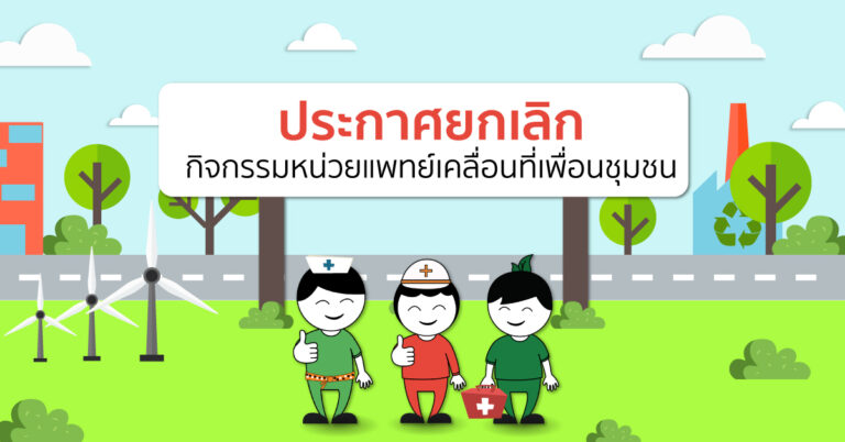 กิจกรรมหน่วยแพทย์เคลื่อนที่่เพื่อนชุมชน ประกาศยกเลิกกิจกรรมหน่วยแพทย์เคลื่อนที่เพื่อนชุมชน เนื่องจากสถานการณ์การแพร่ระบาดของเชื้อไวรัส COVID-19 ที่มีการแพร่ระบาด
