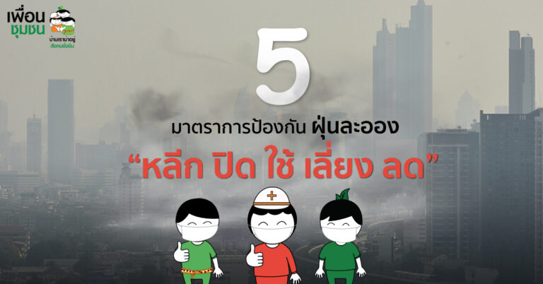 ฝุ่นควันหรือฝุ่นขนาดเล็ก ที่เกิดจากการเผาไหม้จะส่งผลกระทบ ทำให้มีอาการทางระบบทางเดินหายใจ สำหรับการดูแลสุขภาพตัวเองในช่วงหมอกควัน ให้ยึดหลัก 5 มาตรการ “หลีก ปิด ใช้ เลี่ยง ลด” ดังนี้..